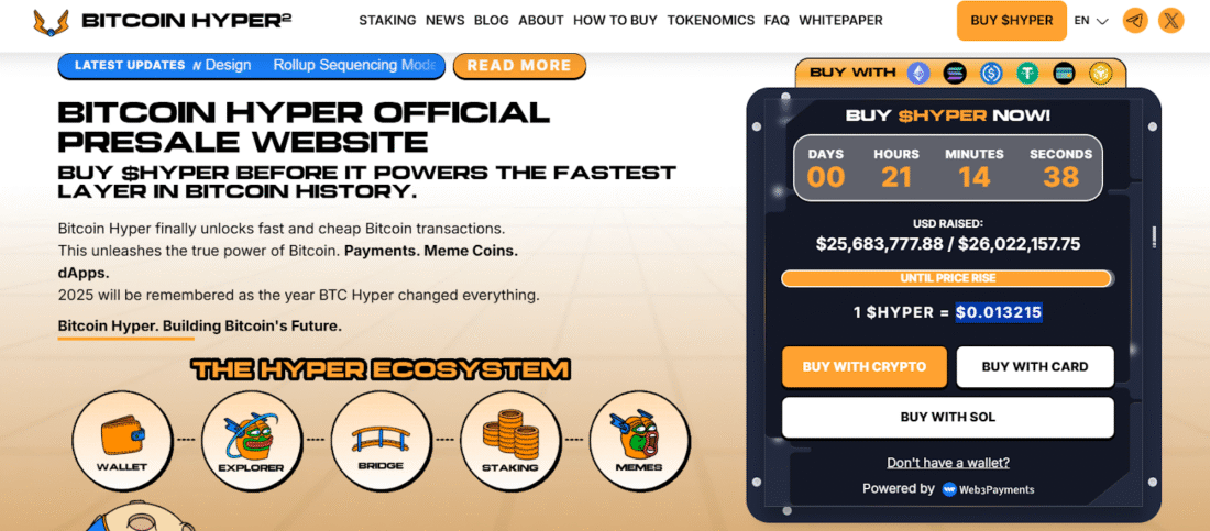 With this in mind, the $HYPER crypto presale has attracted significant interest, raising over $25 million so far. At the moment, one $HYPER token is available for $0.013215, while the launch price is currently unknown.