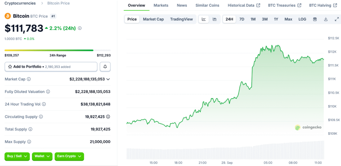 Bitcoin (BTC), the king of crypto, remains the most dominant digital asset in the world. Priced today at approximately $111,783 USD, it has seen minor daily fluctuations, but its yearly range shows just how much upside and volatility remain: from lows of $58,895.21 to highs of $124,457.12.