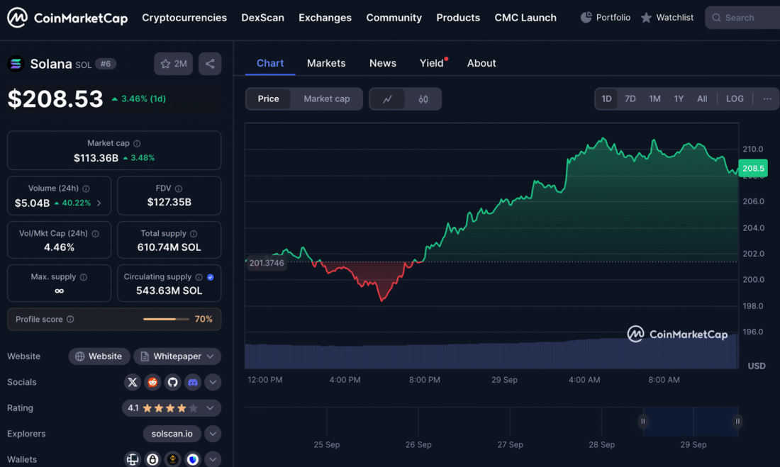 Solana (SOL) continues to dominate the conversation around speed and scalability. Currently priced around $208.53 USD, Solana’s network has grown dramatically, with block capacity increases enabling surging transaction volumes.