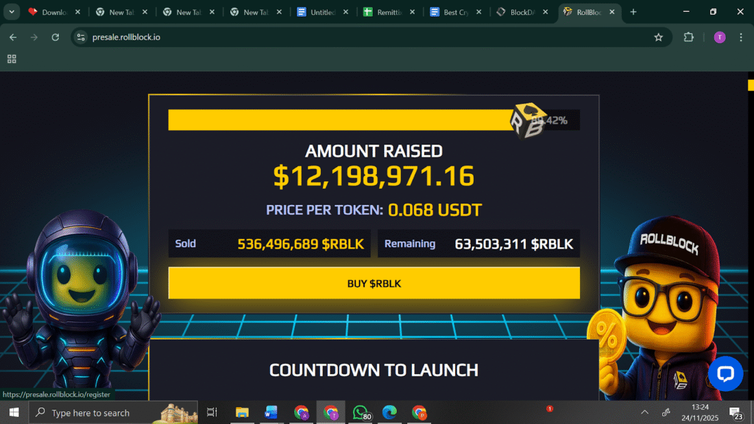 Rollblock targets the intersection of decentralized finance (DeFi) and online gaming by sharing casino revenue with its token holders. According to recent crypto news, the Rollblock presale has raised more than $12.1 million, with over 536 million RBLK tokens sold at a current presale price of $0.068. That scale makes Rollblock one of the most anticipated crypto presales of 2025 in the GambleFi niche.