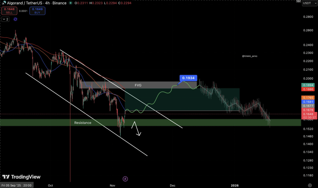According to analysts, the upcoming weeks will be crucial for the Algorand price prediction, with resistance at $0.1799 remaining as the primary breakout barrier. A clear move above this level can lead to a shift in sentiment to set up ALGO for a potential rally toward $0.30 before higher zones are targeted.