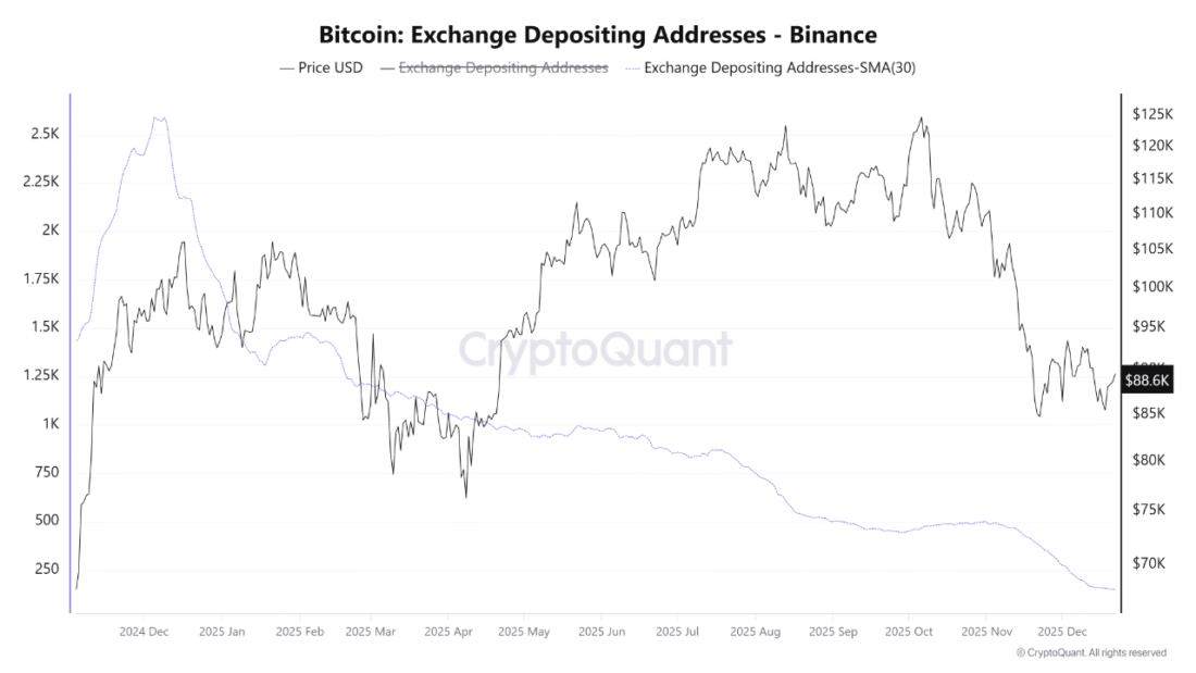 Bitcoin continues to drop below 90,000 with network activity, and exchange flows registering annual lows, showing general market indifference towards traders.