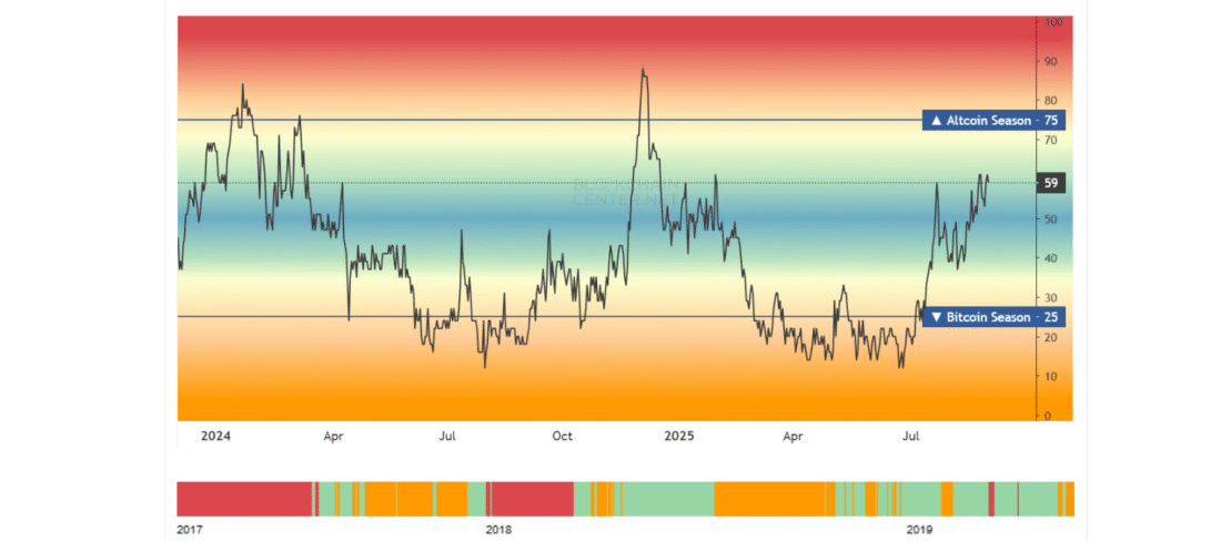 In the meantime, the Altcoin Season Index is at 59, just below the required index of 75 to indicate a complete alt season. This significant BTC-to-ETH trade arouses the suspicion that the growth of altcoins is imminent.