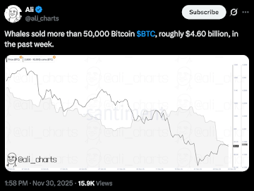 Whales are already moving first. Over 50,000 BTC (more than $4.6 billion) has left whale wallets this week. That’s a warning shot.