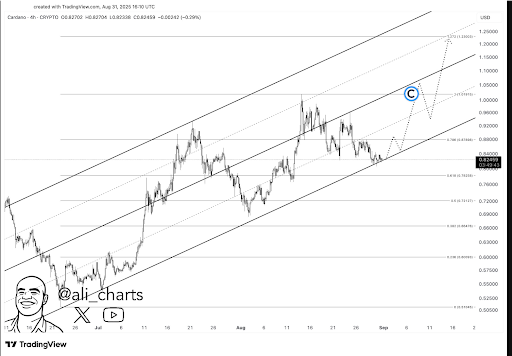Furthermore, crypto analyst Ali Charts also weighed in on Cardano’s short-term prospects. He stated that ADA must break the $0.88 level to confirm a rally toward $1.20. His earlier forecast in August suggested a potential rise to $1.30 if ADA surpassed $0.84, showing consistent optimism around technical levels.
