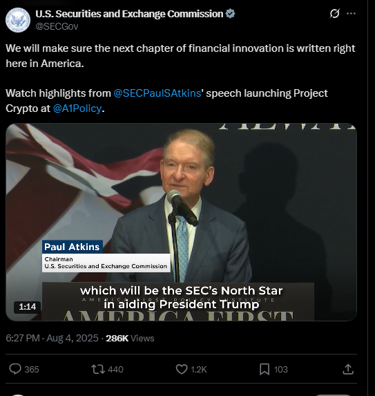 Project Crypto will help in explaining how most crypto assets can be classified and regulated. Chairman Atkins underlined the fact that not all crypto-tokens are securities, and he instructed the staff to prepare articulate rules in order to clarify unresolved regulatory issues.