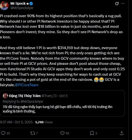 A social media analyst popularly termed the crash a rug pull, noting that the only winners seem to be the Pi Core Team, but not average users who mined tokens over the years.