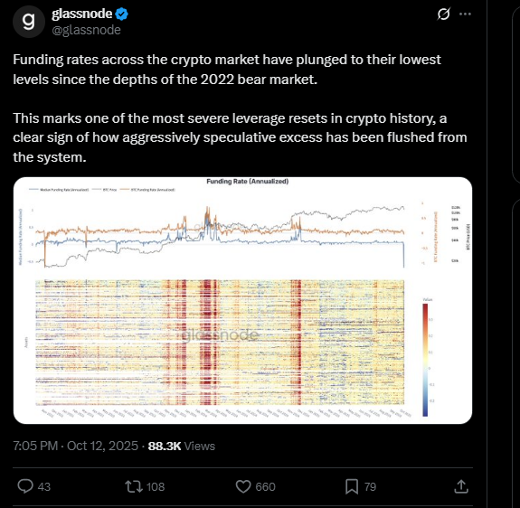 Funding rates on crypto derivatives hit 3-year lows and suggested a flipping of the market amidst massive liquidation and speculative reset.
