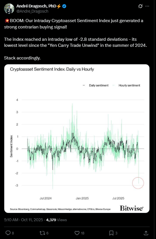 This kind of fear has been a preceding factor of market rebounds, with analysts indicating a high contrarian buying chance.