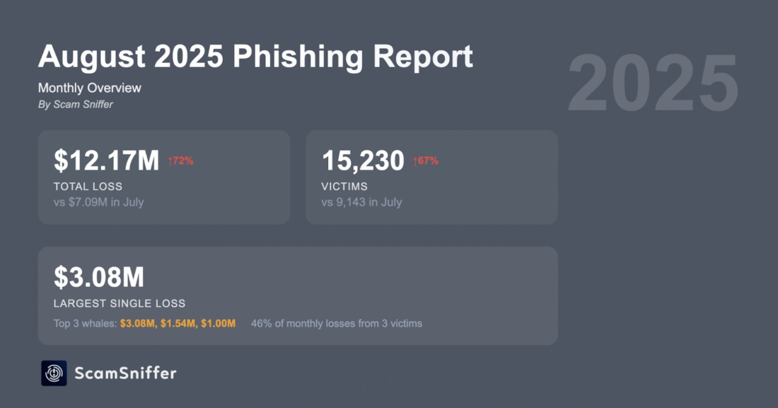 August 2025 saw a remarkable 70+ percent increase in crypto phishing schemes, with losses reaching a jarring $12.17 million.