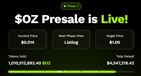 Currently in its 7th OZ presale stage, Ozak AI has already raised over $4.5 million and sold more than 1 billion OZ tokens, signaling massive early investor demand. Its unique architecture is built around AI prediction agents—autonomous, self-learning digital entities that can analyze blockchain and off-chain data, forecast trends, and execute automated tasks across decentralized applications.