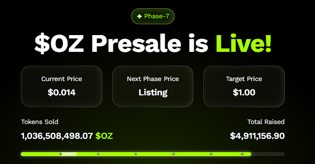 Perceptron Network’s 700K+ distributed nodes feed Ozak AI a constant stream of high-quality chain-level data, enabling the system to learn and evolve in real time. With the Ozak AI Presale now exceeding $4.9 million, investors clearly recognize the difference: while most presale tokens rely on hype, Ozak AI relies on computation, intelligence, and self-improving architecture. This is the foundation behind analyst projections that place Ozak AI within the rare 50x–100x performance window for 2025–2026.