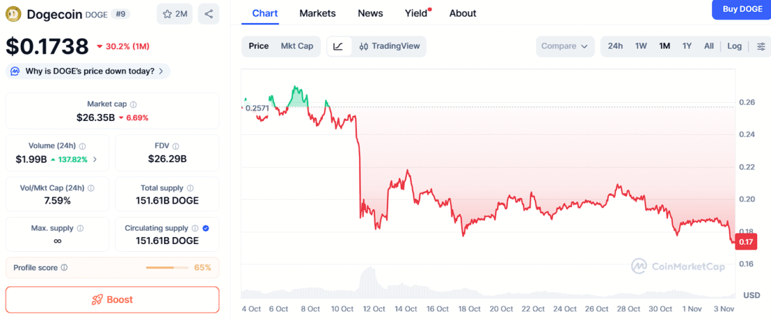 Technically, DOGE has key levels to watch: recent support sits near ~$0.1832, ~$0.1797, and ~$0.1769. Resistance levels are at ~$0.1895, ~$0.1923, and ~$0.1958.