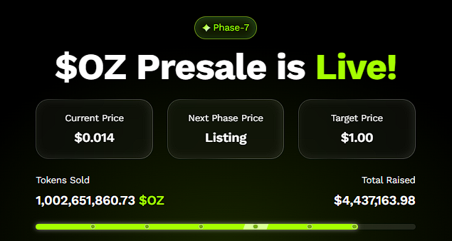 Ozak AI isn’t chasing memes—it’s building systems. The token is currently in presale around $0.014 per unit.