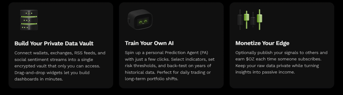 Ozak AI is a blockchain-based crypto project that provides a technology platform that specializes in predictive AI and advanced data analytics for financial markets. Through machine learning algorithms and decentralized network technologies, Ozak AI enables real-time, accurate, and actionable insights to help crypto enthusiasts and businesses make the correct decisions.