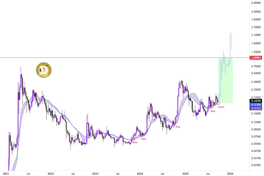 Several analysts are now targeting $1 in 2025. Cas Abbe believes that if DOGE breaks past $0.33, it will rally past $1 and also spark alt season. This makes it the best crypto to buy now.