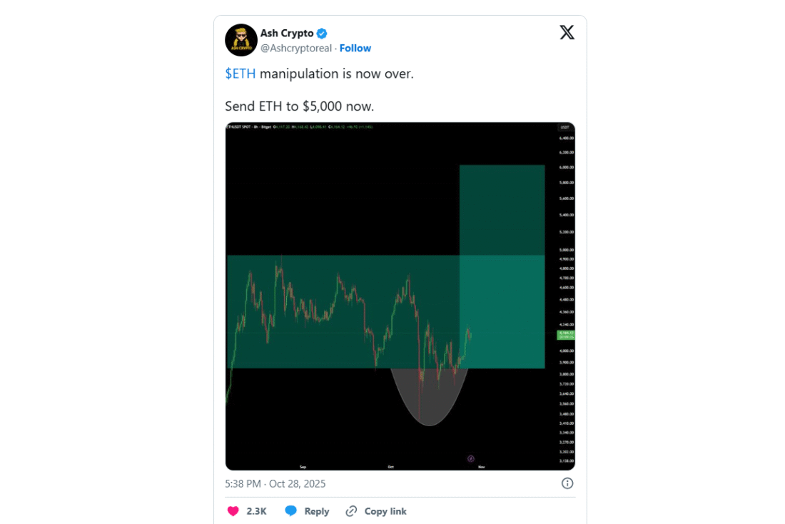 Looking ahead, Ali_Charts observes that the Ethereum price has two major resistances before reaching a new all-time high. They are $4,300 and $4,530. If this level is broken, the ETH price might pump to $5,000, a level that Ash Crypto is bullish about.
