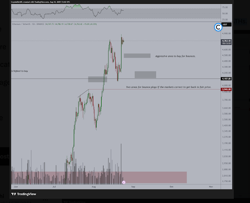 Michael van de Poppe suggested that if Ethereum corrects further, the asset could find support around the $4,100 to $4,200 range. This level is now seen as a key accumulation area for traders who expect Ethereum to target new highs in the future.
