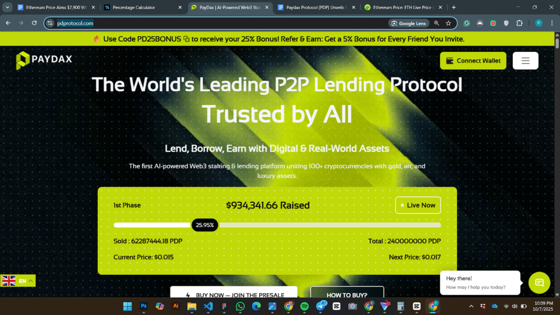 These factors, combined with the projected growth of RWA tokenization by 2040, position PayDax for global DeFi adoption. With $934,000 raised, the PDP presale is ongoing, but tokens are selling out fast, as investors rush to claim the PD25BONUS bonus code.