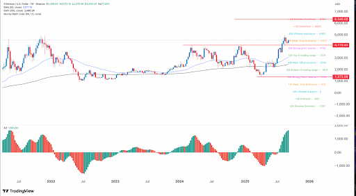 These signals point to more upside for Ethereum. The next target could be $6,250. This level aligns with key technical indicators like the Murrey Math Lines. If ETH falls below $3,000, the bullish outlook would be invalidated.