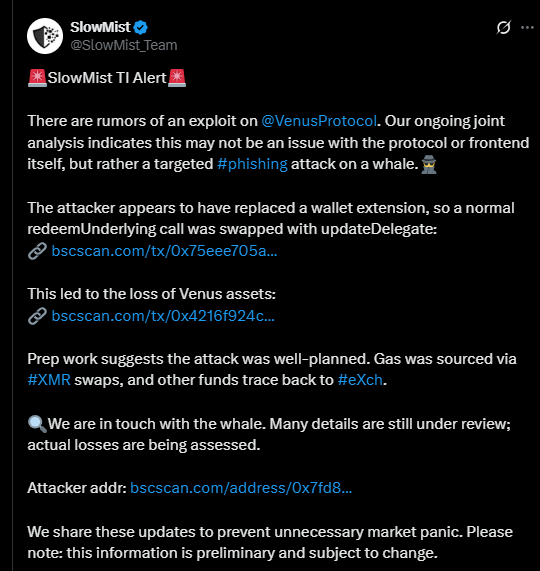 According to an in-depth investigation of SlowMist that was published on their X account, it was this minor hack that enabled the thief to siphon off Venus assets without being noticed until it was too late.