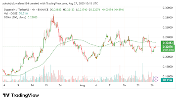 Dogecoin price has held above $0.21 after weeks of volatile trading. Whales added more than 600 million DOGE during August, showing that accumulation is still strong. This whale activity has helped keep the token’s floor stable, even as technical charts warn of downside pressure.