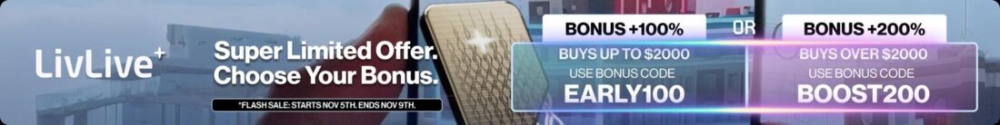 - 💥 Buy up to $2,000 → Use EARLY100 for +100% bonus $LIVE tokens
