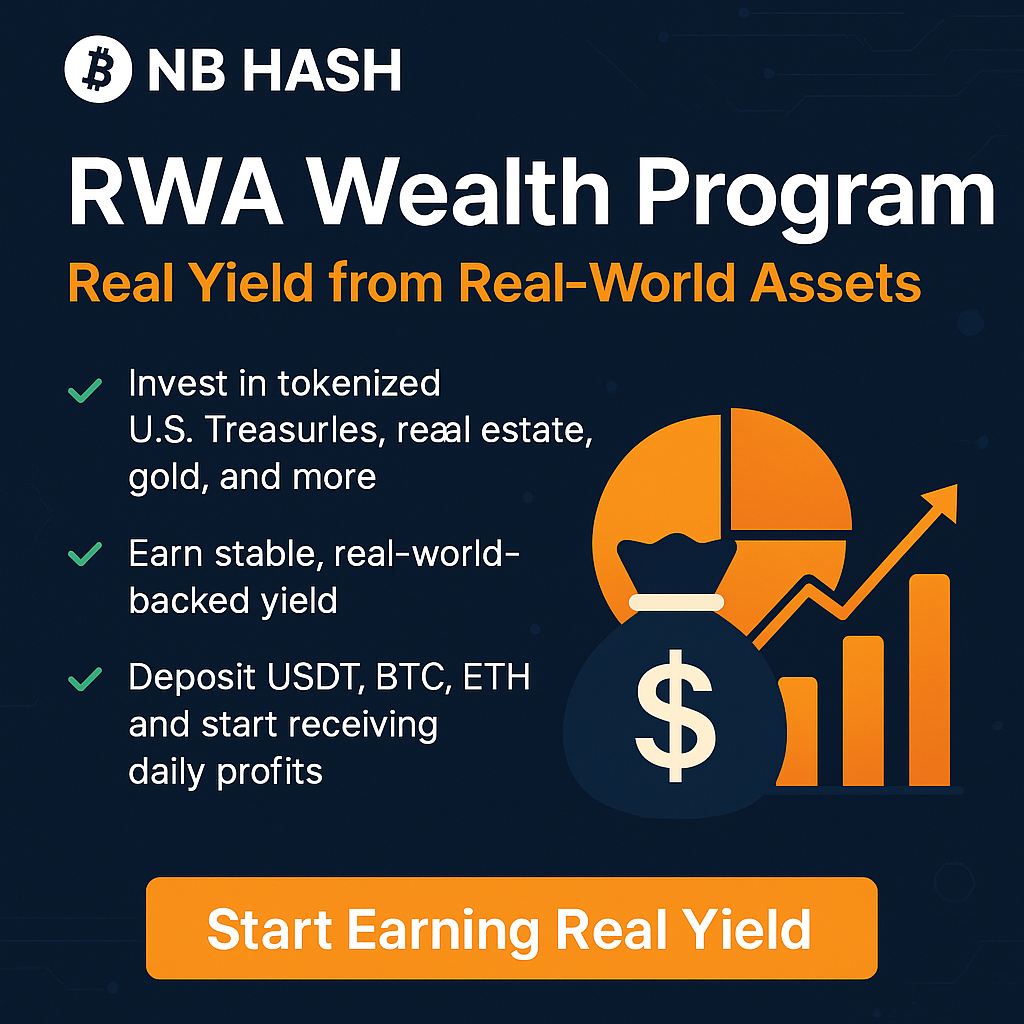 LONDON, Oct 2025 — In the midst of a resurging crypto bull market, the spotlight is shifting from speculation to sustainability. As institutions pour billions into RWA (Real-World Assets) and Bitcoin ETFs, NB HASH — a global cloud mining and digital wealth platform — officially announced its new initiative: the NB RWA Wealth Program, allowing users to earn real yield backed by tangible, real-world assets.