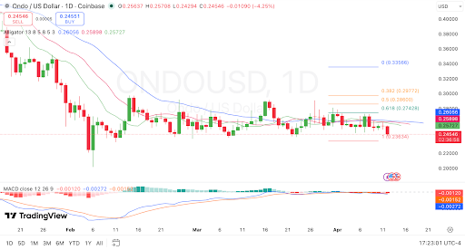 ONDO nears breakdown support as bearish momentum builds, source: TradingView.
