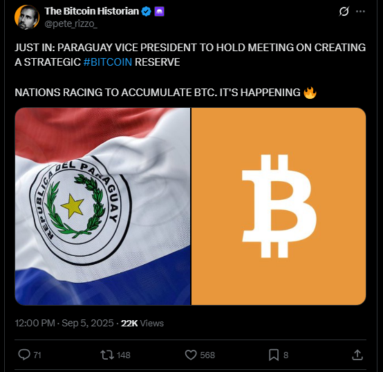The vice president of Paraguay is going to organize an engagement that will establish a strategic bitcoin reserve, and this move will shift he competition regarding BTC ownership to a global scale.