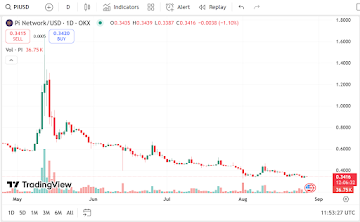 As of now, Pi is worth $0.3434, up 1.42% in the past 24 hours, with a market cap of $2.72 billion. Trading volume on a daily basis has decreased over 31% to $32.97 million, though, which indicates a slowdown in activity.