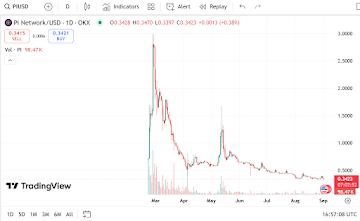 Pi coin price dropped to $0.3406, down 0.59% in the last 24 hours. Its market cap stands at $2.72 billion, while its trading volume fell by 34.23% to $38.39 million. This shows less activity for the project, which was promoted as a way to mine cryptocurrency on mobile devices with low power.