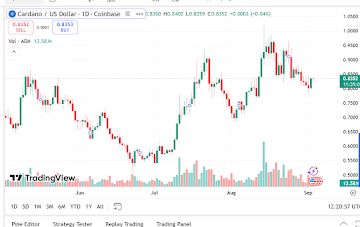 Cardano (ADA) market capitalization is $29.78 billion and its trading volume is $1.2 billion. It is now at $0.8333, increasing by 2.09%. Its market capitalization is $11.57 billion and its trading volume is $273.14 million. Stellar (XLM) is now at $0.3649, increasing by 0.94%.