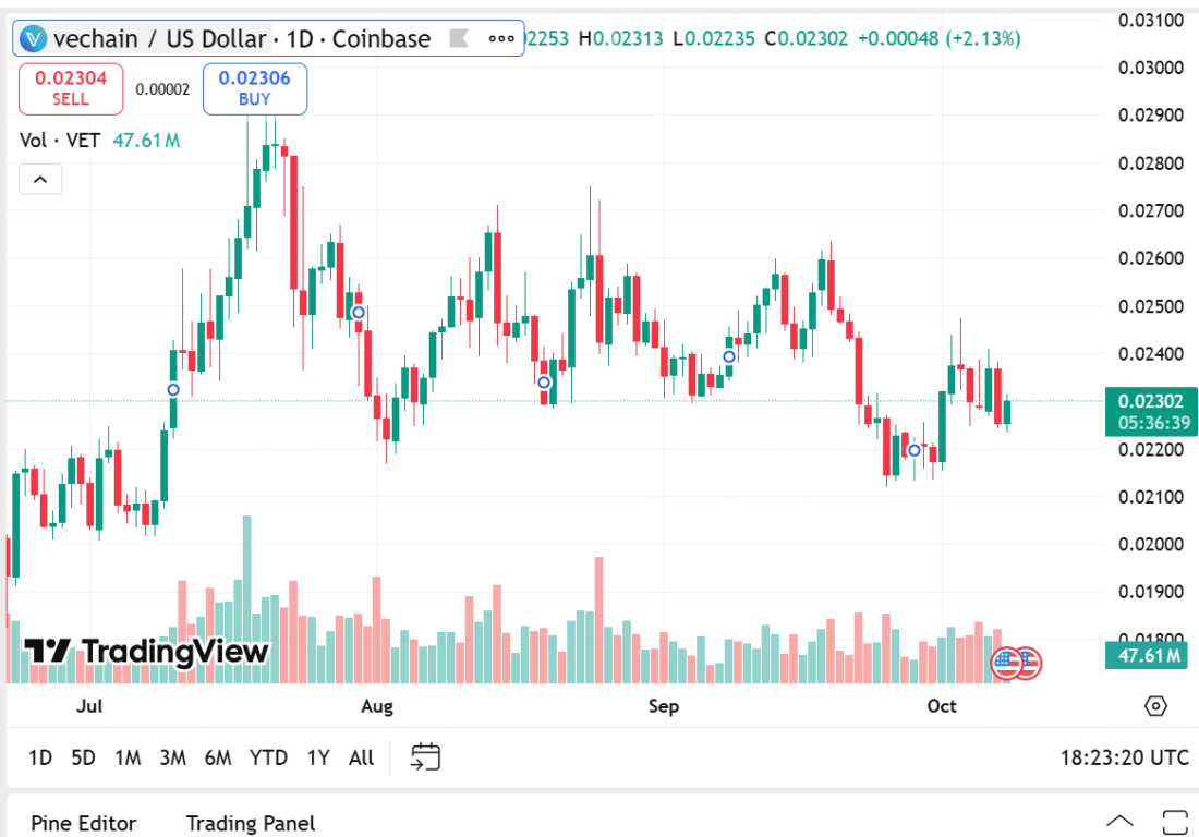 VeChain (VET) is trading at $0.02304, down 2.51% in 24 hours, with a market cap of $1.94 billion. Despite the dip, VeChain continues to strengthen its role in enterprise blockchain adoption, using low-gas-fee crypto solutions to improve transparency across supply chains. Its consistent growth in real-world utility keeps it positioned among the top cryptos under $1.