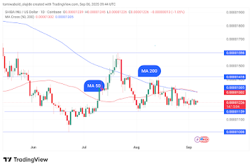 August briefly brought optimism after a golden cross formed, but macro headwinds and the notorious fall crypto season erased that. SHIB reclaimed $0.000013 but couldn’t hold it.