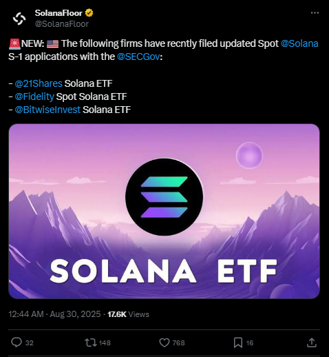 According to the SolanaFloor account on X recently, these firms have submitted their updated Spot Solana ETF S-1 documents under revised terms to the SEC.