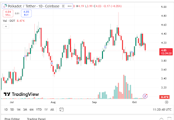 Polkadot (DOT) is now selling at $3.99 after losing a significant 3.57% in the last 24 hours ago. The network’s market cap is $6.48 billion, and in the last 24 hours, it has traded $280.33 million worth of coins, which is a 25.08% drop. Polkadot is one of the best options for decentralized finance (DeFi) use cases and Layer 1 scaling solutions because it can work with other blockchains.