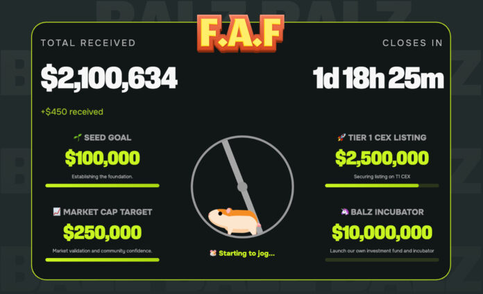 At the center of BALZ is the Fair-As-F* Launch (FAF), a limited-time token presale closing on October 31 at 23:59 PDT. Within days of opening, BALZ raised over $2 million, drawing parallels to earlier community-led launches such as Shiba Inu and Floki in 2020.