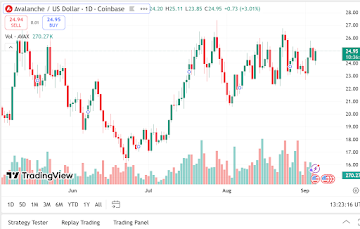 Avalanche is trading at $25.05 today, a 1.41% increase over the last 24 hours. Its market cap currently sits at $10.58 billion, supported by $587.65 million in 24-hour trade volume, an increase of 10.85%.