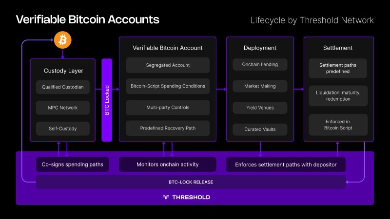 Threshold Network is the protocol behind tBTC, the trust-minimized Bitcoin bridge that has processed over $5 billion in cumulative volume across six years of mainnet operation with zero losses. Verifiable Bitcoin Accounts extend this infrastructure into institutional Bitcoin deployment, combining segregated custody, Bitcoin-enforced spending controls, and access to onchain lending markets. For more information, users can visit www.threshold.network.
