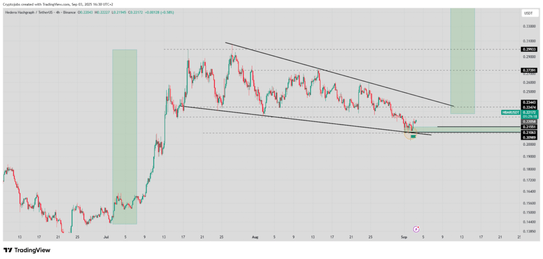 Hedera Hashgraph (HBAR) continues to build its reputation as a scalable, enterprise-grade solution for DeFi. Its hashgraph technology delivers speed and security, drawing developer attention and fueling gradual price gains.