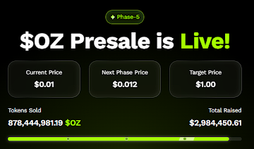 In contrast to Cardano’s established status, Ozak AI (OZ) is still in its early stages, yet it has already raised more than $2.9 million in its presale. Priced at just $0.01 per token in Stage 5, Ozak AI is creating excitement with projections of 100× returns if it climbs to $1 or beyond after listing. This means even a small investment could generate life-changing gains. For example, a $500 allocation would secure 50,000 tokens, which could be worth $50,000 at $1.