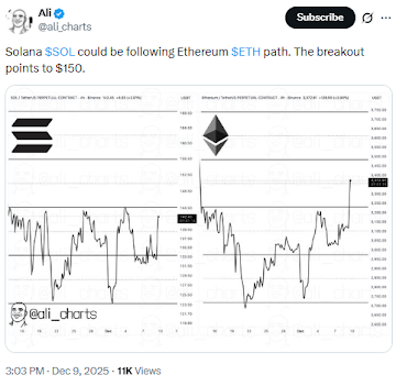 Solana traded at around $120 at the start of December, and technical analysis pointed to a possibility of retesting the $100 level. However, the overall crypto market sentiment rebounded ahead of the Fed decision. Solana is a major blue-chip token, meaning its near-term direction is mostly impacted by major macro events.