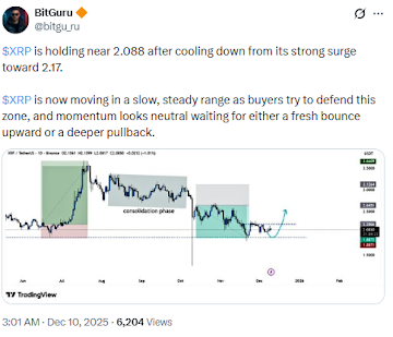 Technically, XRP remains above a multi-month support zone near $1.94, so trading above $2 is a bullish sign. Investors may want to wait for further confirmation before adding XRP to their list of crypto to buy. XRP would need to gain ground above the next resistance level near $2.30–$2.50 before adding it to their portfolio.