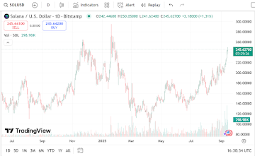 At the same time, the price of Solana has increased to $243.67 by 1.57%, with the support of a market capitalization of $132.04 billion and trading volume of $8.51 billion, though this has dropped by 4.72% on the day.