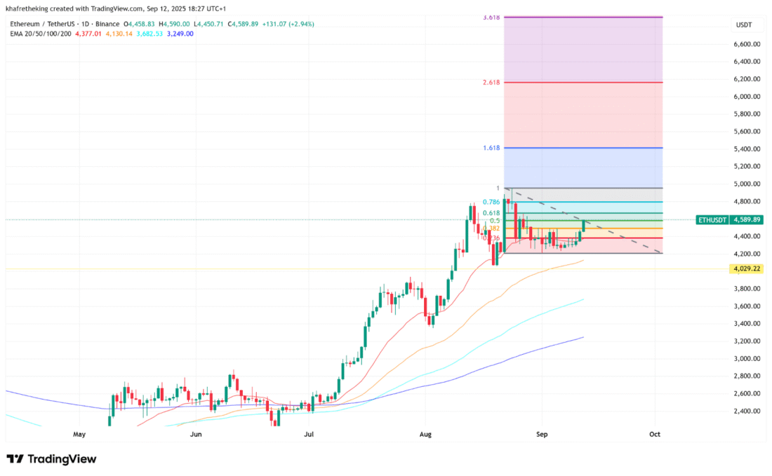 Following technical analysis of the recent Ethereum price formation, experts suggest it could reach as high as $7,000 if the $5,000 level holds before mid-October.